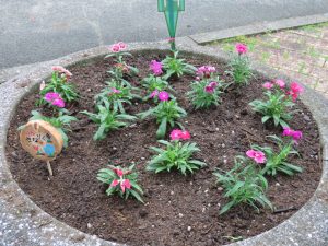管理センター前の16鉢のコンテナに花を植えてもらい、記念の森の入口がとても華やかになりました🌼