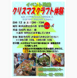 イベント開催のお知らせ【クリスマスクラフト体験】12/6(土)13時~15時