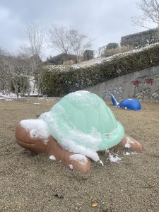 ヤスゴンも雪が積もって寒そうにしています⛄
