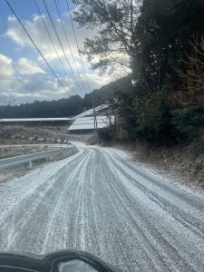また、明日1/24(土)も朝方に雪が降る予報となっておりますので、平地は積もっていなくても、山道の途中から急に凍結していたり、通行止めになっていることもございます。