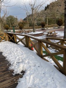 園内ではまだ雪が見られ、表面はガチガチになっています❄️