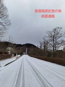 2/8(日)9:00現在の周辺道路の様子です。雪で中央線が見えにくくなっているところもございます。風の広場はうっすら積もっていて白い景色が広がっています☃️ご来園の際は冬用タイヤを装着の上、お気をつけてお越しください。