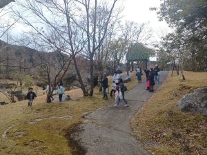 森林インストラクターさんと一緒に渓流園をお散歩しながら、植物や生き物を観察して楽しく自然学習をしてもらいました。