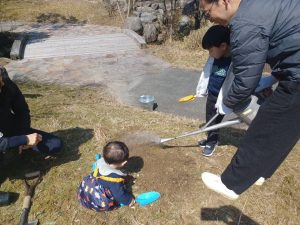 ④まずはスコップを使って土を掘ります。